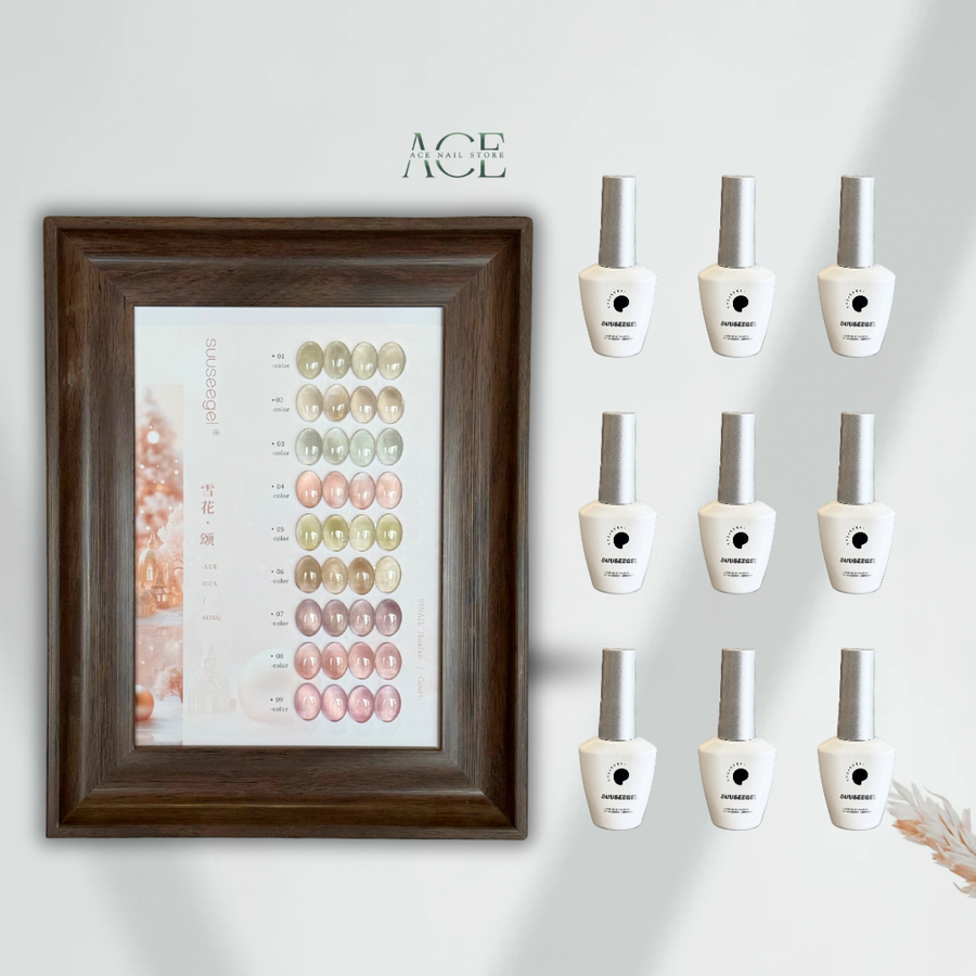 Discover the Suuseegel Snow Flower Gel Collection, featuring a luxurious palette with subtle pearlescent shine and long-lasting gloss. Each shade is carefully crafted to deliver an elegant, shimmering effect — perfect for both professional salons and at-home nail lovers.
